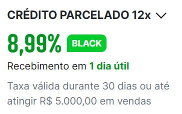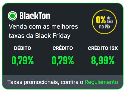 Para novos pedidos de maquininha do plano Black Ton, as taxas são válidas enquanto você vender pelo menos R$ 2.000,00 no mês.
