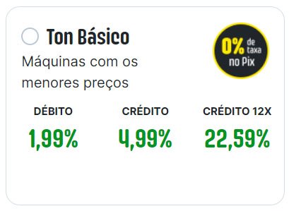 Já nos planos Ton Básico e MegaTon não existe mínimo de vendas. Confira mais detalhes no regulamento dos planos